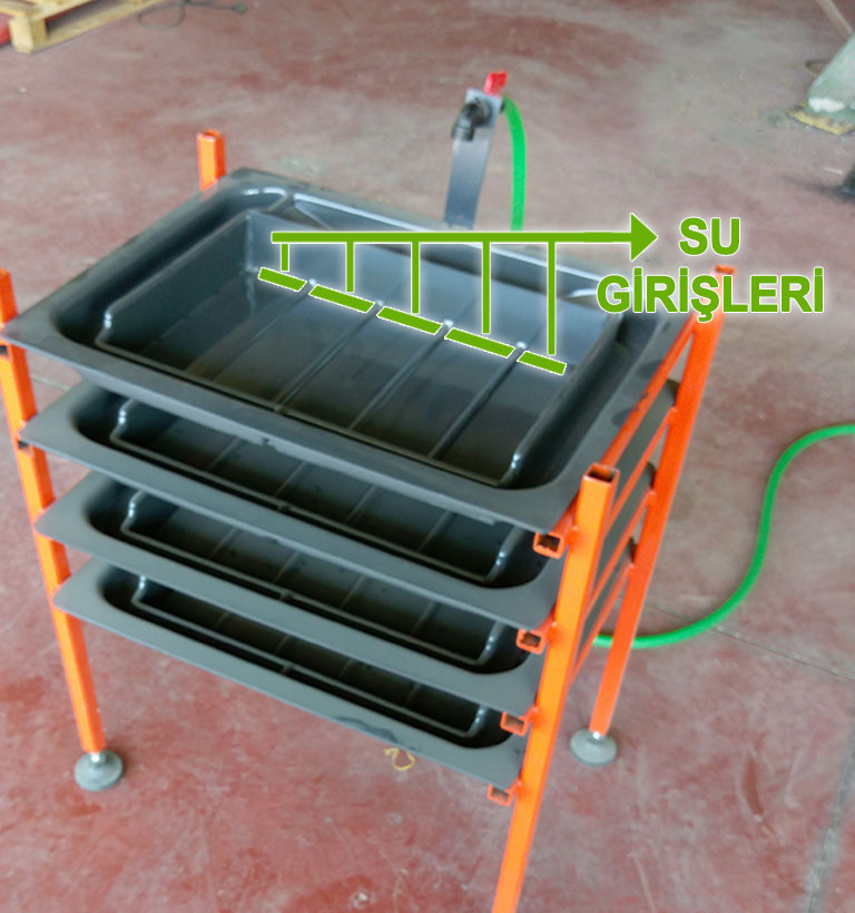 Kuluçka tavalarında suyun alttan gelmesi çok önemlidir. Sistem bu önemli ayrıntı dikkat edilerek tasarlanmıştır. Her tavada su alttan girer. Ayrıntılı bilgi için galeri sayfamızdaki videoları izleyebilirsiniz.